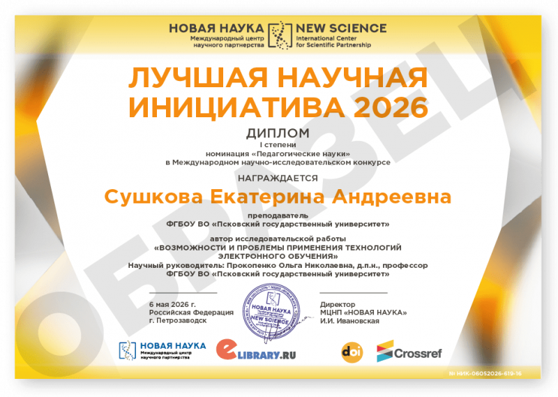 Международный научно-исследовательский конкурс ЛУЧШАЯ НАУЧНАЯ ИНИЦИАТИВА 2026 Код конкурса: НИК-619 Дата проведения: 6 мая 2026 г. К участию в конкурсе принимаются статьи объемом от 5 до 12 страниц на русском и английском языках. Авторами одной конкурсной работы могут быть несколько человек. По итогам конкурса его участники получают: 1. Публикацию своей конкурсной работы (статьи) в сборнике статей конкурса «ЛУЧШАЯ НАУЧНАЯ ИНИЦИАТИВА 2026». Сборнику присваиваются УДК, ББК, ISBN; 2. Именные Дипломы (I, II или III степени) по решению редколлегии; 3. Размещение сборника и публикации участника в Научной электронной библиотеке eLIBRARY (Договор №467-03/2018K); 4. DOI - международный цифровой идентификатор публикации (см. условия участия); 5. Бесплатный сборник статей конкурса «ЛУЧШАЯ НАУЧНАЯ ИНИЦИАТИВА 2026» (в электронном виде); 6. По итогам конкурсов предоставляется выписка из Протокола рассмотрения и оценки конкурсных работ и другие необходимые для отчетности документы (по запросу участника). Сборник статей конкурса формируется в течение 5 дней после окончания приема конкурсных работ (статей) и будет размещен на нашем сайте в разделе Архив конкурсов. Оргвзнос: 990 руб. |