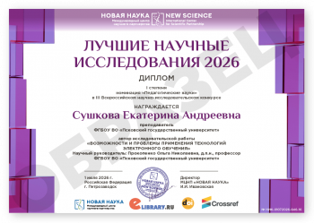 III Всероссийский научно-исследовательский конкурс ЛУЧШИЕ НАУЧНЫЕ ИССЛЕДОВАНИЯ 2026 Код конкурса: НИК-646 Дата проведения: 1 июля 2026 г. К участию в конкурсе принимаются статьи объемом от 5 до 12 страниц на русском и английском языках. Авторами одной конкурсной работы могут быть несколько человек. По итогам конкурса его участники получают: 1. Публикацию своей конкурсной работы (статьи) в сборнике статей конкурса «ЛУЧШИЕ НАУЧНЫЕ ИССЛЕДОВАНИЯ 2026». Сборнику присваиваются УДК, ББК, ISBN; 2. Именные Дипломы (I, II или III степени) по решению редколлегии; 3. Размещение сборника и публикации участника в Научной электронной библиотеке eLIBRARY (Договор №467-03/2018K); 4. DOI - международный цифровой идентификатор публикации (см. условия участия); 5. Бесплатный сборник статей конкурса «ЛУЧШИЕ НАУЧНЫЕ ИССЛЕДОВАНИЯ 2026» (в электронном виде); 6. По итогам конкурсов предоставляется выписка из Протокола рассмотрения и оценки конкурсных работ и другие необходимые для отчетности документы (по запросу участника). Сборник статей конкурса формируется в течение 5 дней после окончания приема конкурсных работ (статей) и будет размещен на нашем сайте в разделе Архив конкурсов. Оргвзнос: 890 руб. |