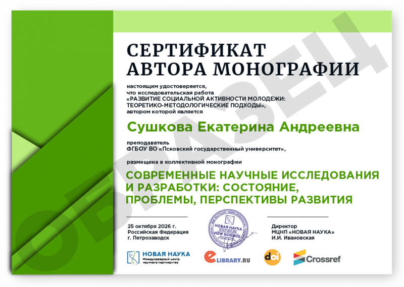 Коллективная монография СОВРЕМЕННЫЕ НАУЧНЫЕ ИССЛЕДОВАНИЯ И РАЗРАБОТКИ: СОСТОЯНИЕ, ПРОБЛЕМЫ, ПЕРСПЕКТИВЫ РАЗВИТИЯ Код монографии: МОН-166 Работы объемом от 15 страниц принимаются до 25 октября 2026 г. (включительно).