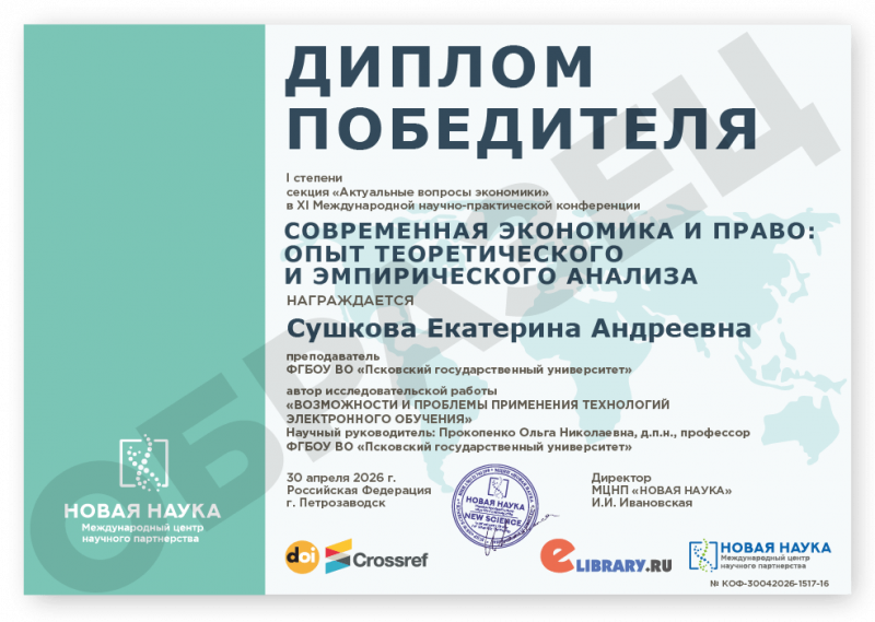 СЕКЦИИ КОНФЕРЕНЦИИ Секция 1. Мировая экономикаСекция 2. Экономика предпринимательства Секция 3. Менеджмент и маркетинг Секция 4. Финансы, денежное обращение и кредит Секция 5. Бухгалтерский учет и налогообложение Секция 6. Математические методы экономики Секция 7. Актуальные вопросы экономики Секция 8. Конституционное и муниципальное право Секция 9. Гражданское и семейное право Секция 10. Трудовое и предпринимательское право Секция 11. Уголовное право и криминология Секция 12. Актуальные вопросы социологических наук Секция 13. Правоохранительная деятельность Секция 14. Актуальные вопросы юридических наук Секция 15. Административное право Секция 16. Международное право Секция 17. Государственное и муниципальное управление |