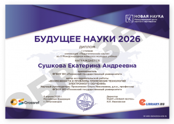 II Международный конкурс молодых учёных БУДУЩЕЕ НАУКИ 2026 Код конкурса: НИК-609 Дата проведения: 6 апреля 2026 г. К участию в конкурсе принимаются статьи объемом от 5 до 12 страниц на русском и английском языках. Авторами одной конкурсной работы могут быть несколько человек. По итогам конкурса его участники получают: 1. Публикацию своей конкурсной работы (статьи) в сборнике статей конкурса «БУДУЩЕЕ НАУКИ 2026». Сборнику присваиваются УДК, ББК, ISBN; 2. Именные Дипломы (I, II или III степени) по решению редколлегии; 3. Размещение сборника и публикации участника в Научной электронной библиотеке eLIBRARY (Договор №467-03/2018K); 4. DOI - международный цифровой идентификатор публикации (см. условия участия); 5. Бесплатный сборник статей конкурса «БУДУЩЕЕ НАУКИ 2026» (в электронном виде); 6. По итогам конкурсов предоставляется выписка из Протокола рассмотрения и оценки конкурсных работ и другие необходимые для отчетности документы (по запросу участника). Сборник статей конкурса формируется в течение 5 дней после окончания приема конкурсных работ (статей) и будет размещен на нашем сайте в разделе Архив конкурсов. Оргвзнос: 890 руб. |