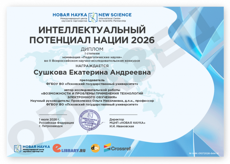 II Всероссийский научно-исследовательский конкурс ИНТЕЛЛЕКТУАЛЬНЫЙ ПОТЕНЦИАЛ НАЦИИ 2026 Код конкурса: НИК-644 Дата проведения: 1 июля 2026 г. К участию в конкурсе принимаются статьи объемом от 5 до 12 страниц на русском и английском языках. Авторами одной конкурсной работы могут быть несколько человек. По итогам конкурса его участники получают: 1. Публикацию своей конкурсной работы (статьи) в сборнике статей конкурса «ИНТЕЛЛЕКТУАЛЬНЫЙ ПОТЕНЦИАЛ НАЦИИ 2026». Сборнику присваиваются УДК, ББК, ISBN; 2. Именные Дипломы (I, II или III степени) по решению редколлегии; 3. Размещение сборника и публикации участника в Научной электронной библиотеке eLIBRARY (Договор №467-03/2018K); 4. DOI - международный цифровой идентификатор публикации (см. условия участия); 5. Бесплатный сборник статей конкурса «ИНТЕЛЛЕКТУАЛЬНЫЙ ПОТЕНЦИАЛ НАЦИИ 2026» (в электронном виде); 6. По итогам конкурсов предоставляется выписка из Протокола рассмотрения и оценки конкурсных работ и другие необходимые для отчетности документы (по запросу участника). Сборник статей конкурса формируется в течение 5 дней после окончания приема конкурсных работ (статей) и будет размещен на нашем сайте в разделе Архив конкурсов. Оргвзнос: 890 руб. |