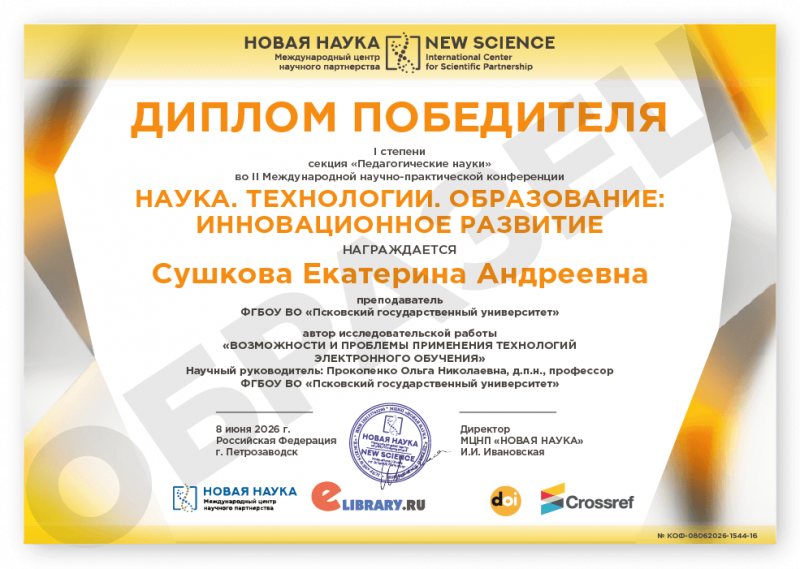 II Международная научно-практическая конференция НАУКА. ТЕХНОЛОГИИ. ОБРАЗОВАНИЕ: ИННОВАЦИОННОЕ РАЗВИТИЕ Код конференции: КОФ-1544 Дата проведения: 8 июня 2026 г. К участию в конференции принимаются статьи объемом от 5 страниц. Сборник статей конференции с присвоением ISBN, УДК, ББК формируется в течение 3 дней после окончания приема статей и будет размещен на нашем сайте в разделе Архив конференций. Бесплатно каждому автору предоставляется: