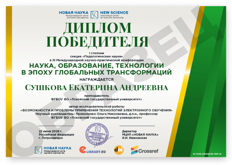 III Международная научно-практическая конференция НАУКА, ОБРАЗОВАНИЕ, ТЕХНОЛОГИИ В ЭПОХУ ГЛОБАЛЬНЫХ ТРАНСФОРМАЦИЙ Код конференции: КОФ-1551 Дата проведения: 22 июня 2026 г. К участию в конференции принимаются статьи объемом от 5 страниц. Сборник статей конференции с присвоением ISBN, УДК, ББК формируется в течение 3 дней после окончания приема статей и будет размещен на нашем сайте в разделе Архив конференций. Бесплатно каждому автору предоставляется: