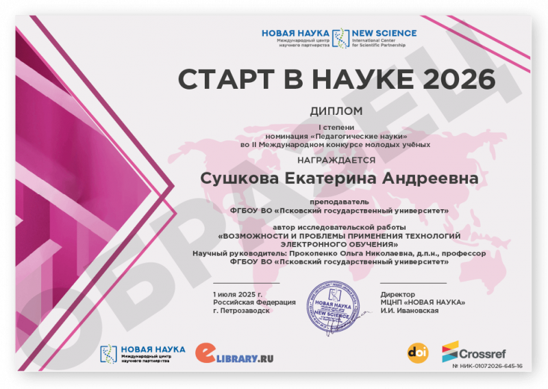 II Международный конкурс молодых учёных СТАРТ В НАУКЕ 2026 Код конкурса: НИК-645 Дата проведения: 1 июля 2026 г. К участию в конкурсе принимаются статьи объемом от 5 до 12 страниц на русском и английском языках. Авторами одной конкурсной работы могут быть несколько человек. По итогам конкурса его участники получают: 1. Публикацию своей конкурсной работы (статьи) в сборнике статей конкурса «СТАРТ В НАУКЕ 2026». Сборнику присваиваются УДК, ББК, ISBN; 2. Именные Дипломы (I, II или III степени) по решению редколлегии; 3. Размещение сборника и публикации участника в Научной электронной библиотеке eLIBRARY (Договор №467-03/2018K); 4. DOI - международный цифровой идентификатор публикации (см. условия участия); 5. Бесплатный сборник статей конкурса «СТАРТ В НАУКЕ 2026» (в электронном виде); 6. По итогам конкурсов предоставляется выписка из Протокола рассмотрения и оценки конкурсных работ и другие необходимые для отчетности документы (по запросу участника). Сборник статей конкурса формируется в течение 5 дней после окончания приема конкурсных работ (статей) и будет размещен на нашем сайте в разделе Архив конкурсов. Оргвзнос: 890 руб. |