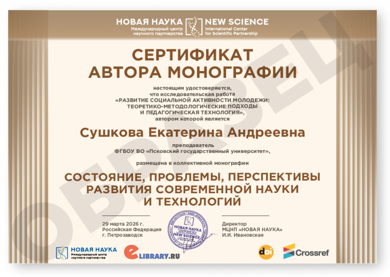 Коллективная монография СОСТОЯНИЕ, ПРОБЛЕМЫ, ПЕРСПЕКТИВЫ РАЗВИТИЯ СОВРЕМЕННОЙ НАУКИ И ТЕХНОЛОГИЙ Код монографии: МОН-160 Работы объемом от 15 страниц принимаются до 29 марта 2026 г. (включительно).