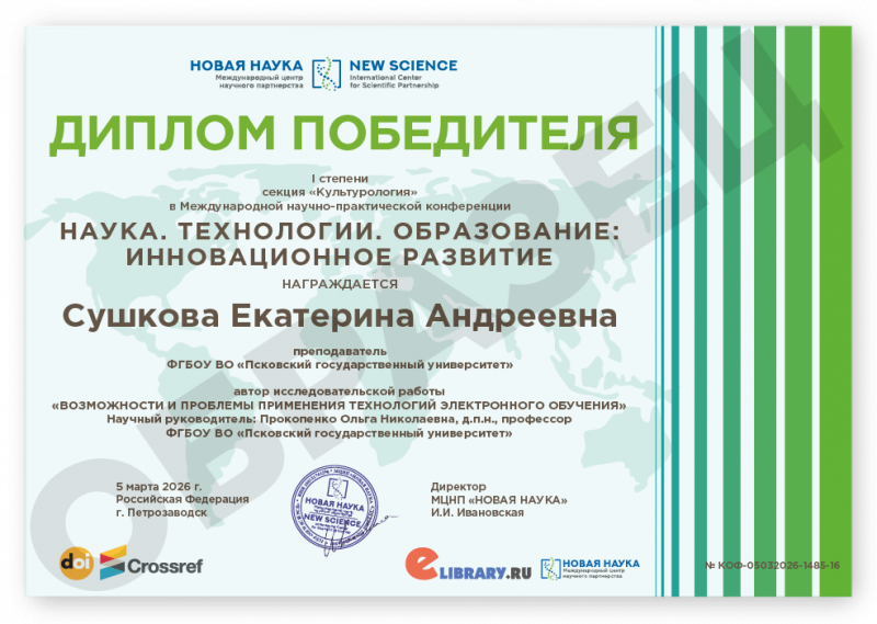 Международная научно-практическая конференция НАУКА. ТЕХНОЛОГИИ. ОБРАЗОВАНИЕ: ИННОВАЦИОННОЕ РАЗВИТИЕ Код конференции: КОФ-1485 Дата проведения: 5 марта 2026 г. К участию в конференции принимаются статьи объемом от 5 страниц. Сборник статей конференции с присвоением ISBN, УДК, ББК формируется в течение 3 дней после окончания приема статей и будет размещен на нашем сайте в разделе Архив конференций. Бесплатно каждому автору предоставляется: