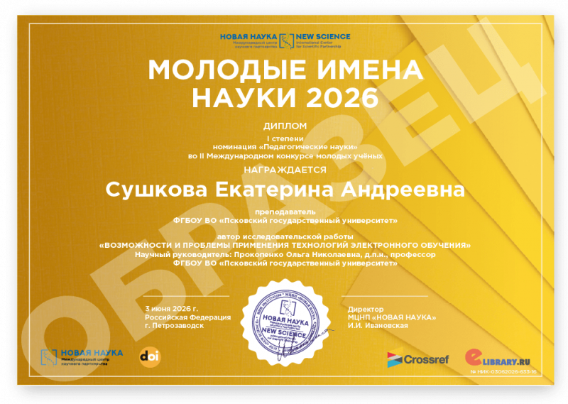 II Международный конкурс молодых учёных МОЛОДЫЕ ИМЕНА НАУКИ 2026 Код конкурса: НИК-633 Дата проведения: 3 июня 2026 г. К участию в конкурсе принимаются статьи объемом от 5 до 12 страниц на русском и английском языках. Авторами одной конкурсной работы могут быть несколько человек. По итогам конкурса его участники получают: 1. Публикацию своей конкурсной работы (статьи) в сборнике статей конкурса «МОЛОДЫЕ ИМЕНА НАУКИ 2026». Сборнику присваиваются УДК, ББК, ISBN; 2. Именные Дипломы (I, II или III степени) по решению редколлегии; 3. Размещение сборника и публикации участника в Научной электронной библиотеке eLIBRARY (Договор №467-03/2018K); 4. DOI - международный цифровой идентификатор публикации (см. условия участия); 5. Бесплатный сборник статей конкурса «МОЛОДЫЕ ИМЕНА НАУКИ 2026» (в электронном виде); 6. По итогам конкурсов предоставляется выписка из Протокола рассмотрения и оценки конкурсных работ и другие необходимые для отчетности документы (по запросу участника). Сборник статей конкурса формируется в течение 5 дней после окончания приема конкурсных работ (статей) и будет размещен на нашем сайте в разделе Архив конкурсов. Оргвзнос: 990 руб. |