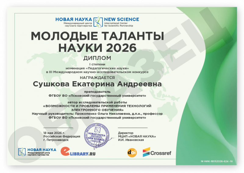 III Международный научно-исследовательский конкурс МОЛОДЫЕ ТАЛАНТЫ НАУКИ 2026 Код конкурса: НИК-624 Дата проведения: 18 мая 2026 г. К участию в конкурсе принимаются статьи объемом от 5 до 12 страниц на русском и английском языках. Авторами одной конкурсной работы могут быть несколько человек. По итогам конкурса его участники получают: 1. Публикацию своей конкурсной работы (статьи) в сборнике статей конкурса «МОЛОДЫЕ ТАЛАНТЫ НАУКИ 2026». Сборнику присваиваются УДК, ББК, ISBN; 2. Именные Дипломы (I, II или III степени) по решению редколлегии; 3. Размещение сборника и публикации участника в Научной электронной библиотеке eLIBRARY (Договор №467-03/2018K); 4. DOI - международный цифровой идентификатор публикации (см. условия участия); 5. Бесплатный сборник статей конкурса «МОЛОДЫЕ ТАЛАНТЫ НАУКИ 2026» (в электронном виде); 6. По итогам конкурсов предоставляется выписка из Протокола рассмотрения и оценки конкурсных работ и другие необходимые для отчетности документы (по запросу участника). Сборник статей конкурса формируется в течение 5 дней после окончания приема конкурсных работ (статей) и будет размещен на нашем сайте в разделе Архив конкурсов. Оргвзнос: 990 руб. |