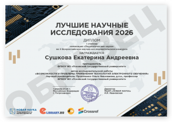 II Всероссийский научно-исследовательский конкурс ЛУЧШИЕ НАУЧНЫЕ ИССЛЕДОВАНИЯ 2026 Код конкурса: НИК-608 Дата проведения: 1 апреля 2026 г. К участию в конкурсе принимаются статьи объемом от 5 до 12 страниц на русском и английском языках. Авторами одной конкурсной работы могут быть несколько человек. По итогам конкурса его участники получают: 1. Публикацию своей конкурсной работы (статьи) в сборнике статей конкурса «ЛУЧШИЕ НАУЧНЫЕ ИССЛЕДОВАНИЯ 2026». Сборнику присваиваются УДК, ББК, ISBN; 2. Именные Дипломы (I, II или III степени) по решению редколлегии; 3. Размещение сборника и публикации участника в Научной электронной библиотеке eLIBRARY (Договор №467-03/2018K); 4. DOI - международный цифровой идентификатор публикации (см. условия участия); 5. Бесплатный сборник статей конкурса «ЛУЧШИЕ НАУЧНЫЕ ИССЛЕДОВАНИЯ 2026» (в электронном виде); 6. По итогам конкурсов предоставляется выписка из Протокола рассмотрения и оценки конкурсных работ и другие необходимые для отчетности документы (по запросу участника). Сборник статей конкурса формируется в течение 5 дней после окончания приема конкурсных работ (статей) и будет размещен на нашем сайте в разделе Архив конкурсов. Оргвзнос: 990 руб. |