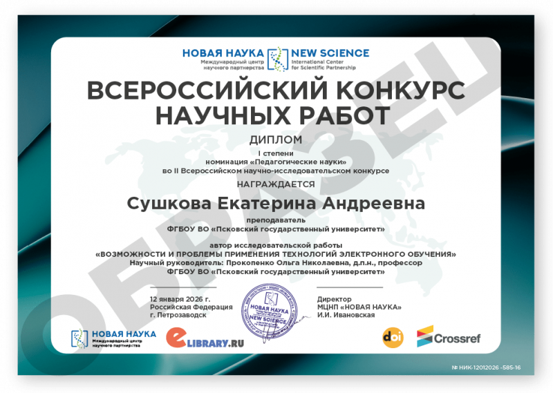 II Всероссийский научно-исследовательский конкурс ВСЕРОССИЙСКИЙ КОНКУРС НАУЧНЫХ РАБОТ Код конкурса: НИК-585 Дата проведения: 12 января 2026 г. К участию в конкурсе принимаются статьи объемом от 5 до 12 страниц на русском и английском языках. Авторами одной конкурсной работы могут быть несколько человек. По итогам конкурса его участники получают: 1. Публикацию своей конкурсной работы (статьи) в сборнике статей конкурса «ВСЕРОССИЙСКИЙ КОНКУРС НАУЧНЫХ РАБОТ». Сборнику присваиваются УДК, ББК, ISBN; 2. Именные Дипломы (I, II или III степени) по решению редколлегии; 3. Размещение сборника и публикации участника в Научной электронной библиотеке eLIBRARY (Договор №467-03/2018K); 4. DOI - международный цифровой идентификатор публикации (см. условия участия); 5. Бесплатный сборник статей конкурса «ВСЕРОССИЙСКИЙ КОНКУРС НАУЧНЫХ РАБОТ» (в электронном виде); 6. По итогам конкурсов предоставляется выписка из Протокола рассмотрения и оценки конкурсных работ и другие необходимые для отчетности документы (по запросу участника). Сборник статей конкурса формируется в течение 5 дней после окончания приема конкурсных работ (статей) и будет размещен на нашем сайте в разделе Архив конкурсов. Оргвзнос: 790 руб. |