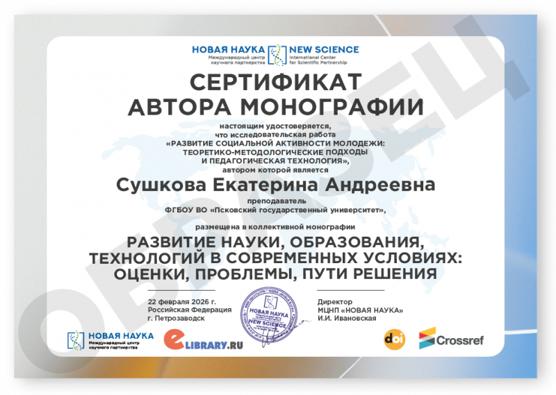 Коллективная монография РАЗВИТИЕ НАУКИ, ОБРАЗОВАНИЯ, ТЕХНОЛОГИЙ В СОВРЕМЕННЫХ УСЛОВИЯХ: ОЦЕНКИ, ПРОБЛЕМЫ, ПУТИ РЕШЕНИЯ Код монографии: МОН-159 Работы объемом от 15 страниц принимаются до 22 февраля 2026 г. (включительно).