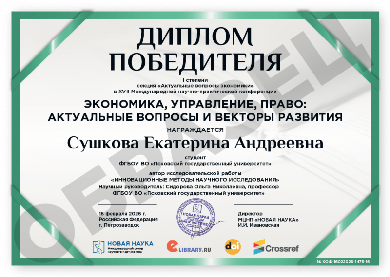 XVII Международная научно-практическая конференция ЭКОНОМИКА, УПРАВЛЕНИЕ, ПРАВО: АКТУАЛЬНЫЕ ВОПРОСЫ И ВЕКТОРЫ РАЗВИТИЯ Код конференции: КОФ-1475 Дата проведения: 16 февраля 2026 г. К участию в конференции принимаются статьи объемом от 5 страниц. Сборник статей конференции с присвоением ISBN, УДК, ББК формируется в течение 3 дней после окончания приема статей и будет размещен на нашем сайте в разделе Архив конференций. Бесплатно каждому автору предоставляется: