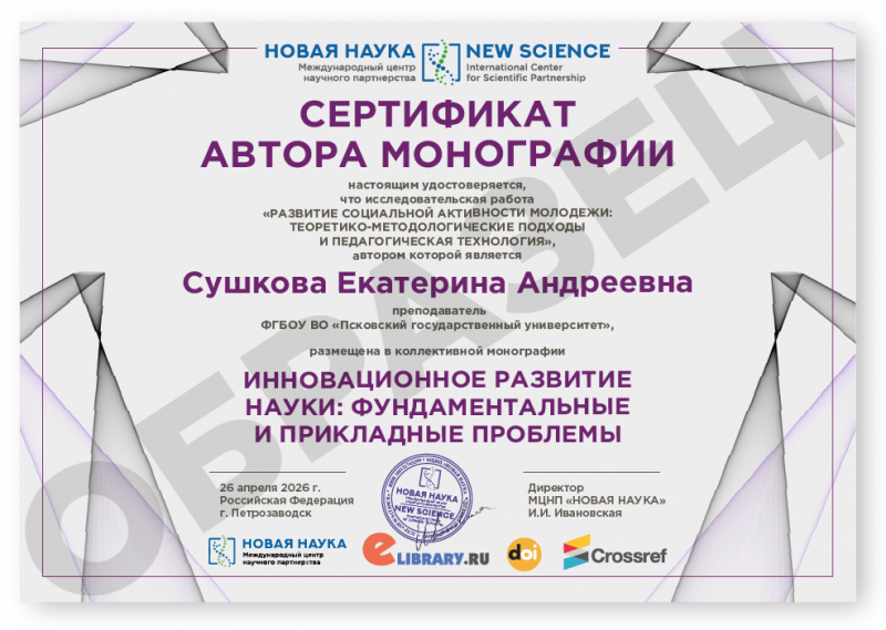 Коллективная монография ИННОВАЦИОННОЕ РАЗВИТИЕ НАУКИ: ФУНДАМЕНТАЛЬНЫЕ И ПРИКЛАДНЫЕ ПРОБЛЕМЫ Код монографии: МОН-161 Работы объемом от 15 страниц принимаются до 26 апреля 2026 г. (включительно).