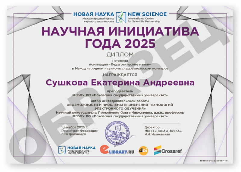 Международный научно-исследовательский конкурс НАУЧНАЯ ИНИЦИАТИВА ГОДА 2025 Код конкурса: НИК-567 Дата проведения: 1 декабря 2025 г. К участию в конкурсе принимаются статьи объемом от 5 до 12 страниц на русском и английском языках. Авторами одной конкурсной работы могут быть несколько человек. По итогам конкурса его участники получают: 1. Публикацию своей конкурсной работы (статьи) в сборнике статей конкурса «НАУЧНАЯ ИНИЦИАТИВА ГОДА 2025». Сборнику присваиваются УДК, ББК, ISBN; 2. Именные Дипломы (I, II или III степени) по решению редколлегии; 3. Размещение сборника и публикации участника в Научной электронной библиотеке eLIBRARY (Договор №467-03/2018K); 4. DOI - международный цифровой идентификатор публикации (см. условия участия); 5. Бесплатный сборник статей конкурса «НАУЧНАЯ ИНИЦИАТИВА ГОДА 2025» (в электронном виде); 6. По итогам конкурсов предоставляется выписка из Протокола рассмотрения и оценки конкурсных работ и другие необходимые для отчетности документы (по запросу участника). Сборник статей конкурса формируется в течение 5 дней после окончания приема конкурсных работ (статей) и будет размещен на нашем сайте в разделе Архив конкурсов. Оргвзнос: 990 руб. |