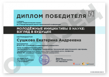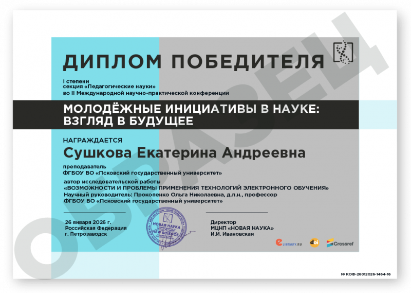 II Международная научно-практическая конференция МОЛОДЁЖНЫЕ ИНИЦИАТИВЫ В НАУКЕ: ВЗГЛЯД В БУДУЩЕЕ Код конференции: КОФ-1464 Дата проведения: 26 января 2026 г. К участию в конференции принимаются статьи объемом от 5 страниц. Сборник статей конференции с присвоением ISBN, УДК, ББК формируется в течение 3 дней после окончания приема статей и будет размещен на нашем сайте в разделе Архив конференций. Бесплатно каждому автору предоставляется: