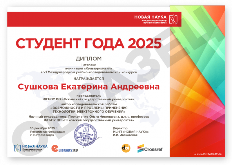 VI Международный учебно-исследовательский конкурс СТУДЕНТ ГОДА 2025 Дата проведения: 10 декабря 2025 г. К участию в конкурсе принимаются учебно- и научно-исследовательские статьи объемом от 5 до 12 страниц на русском и английском языках. Авторами одной конкурсной работы могут быть несколько человек. По итогам конкурса его участники получают: 1. Публикацию своей конкурсной работы (статьи) в сборнике статей конкурса «СТУДЕНТ ГОДА 2025». Сборнику присваиваются УДК, ББК, ISBN; 2. Бесплатные именные Дипломы I, II или III степени по решению редколлегии; 3. Размещение сборника и публикации участника в Научной электронной библиотеке eLIBRARY (Договор №467-03/2018K) в открытом доступе; 4. Бесплатный сборник статей конкурса «СТУДЕНТ ГОДА 2025» (в электронном виде); 5. Присвоение DOI - международного цифрового идентификатора научной публикации, регистрация публикации в Crossref (см. условия участия); 6. По итогам Конкурса предоставляется выписка из Протокола рассмотрения и оценки конкурсных работ, выписка из Приказа и другие необходимые для отчетности документы. Сборник статей конкурса формируется в течение 5 дней после окончания приема конкурсных статей и будет размещен на нашем сайте в разделе Архив конкурсов. Об итогах конкурса участники дополнительно будут проинформированы по электронной почте. Научного руководителя можно указать в конкурсной статье. По итогам мероприятия научный руководитель (если он есть) указывается в Дипломе участника и индексируется в eLIBRARY. Оргвзнос: 990 руб. |