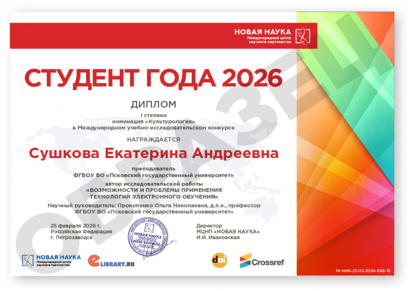 Международный учебно-исследовательский конкурс СТУДЕНТ ГОДА 2026 Дата проведения: 25 февраля 2026 г. К участию в конкурсе принимаются учебно- и научно-исследовательские статьи объемом от 5 до 12 страниц на русском и английском языках. Авторами одной конкурсной работы могут быть несколько человек. По итогам конкурса его участники получают: 1. Публикацию своей конкурсной работы (статьи) в сборнике статей конкурса «СТУДЕНТ ГОДА 2026». Сборнику присваиваются УДК, ББК, ISBN; 2. Бесплатные именные Дипломы I, II или III степени по решению редколлегии; 3. Размещение сборника и публикации участника в Научной электронной библиотеке eLIBRARY (Договор №467-03/2018K) в открытом доступе; 4. Бесплатный сборник статей конкурса «СТУДЕНТ ГОДА 2026» (в электронном виде); 5. Присвоение DOI - международного цифрового идентификатора научной публикации, регистрация публикации в Crossref (см. условия участия); 6. По итогам Конкурса предоставляется выписка из Протокола рассмотрения и оценки конкурсных работ, выписка из Приказа и другие необходимые для отчетности документы. Сборник статей конкурса формируется в течение 5 дней после окончания приема конкурсных статей и будет размещен на нашем сайте в разделе Архив конкурсов. Об итогах конкурса участники дополнительно будут проинформированы по электронной почте. Научного руководителя можно указать в конкурсной статье. По итогам мероприятия научный руководитель (если он есть) указывается в Дипломе участника и индексируется в eLIBRARY. Оргвзнос: 790 руб. |