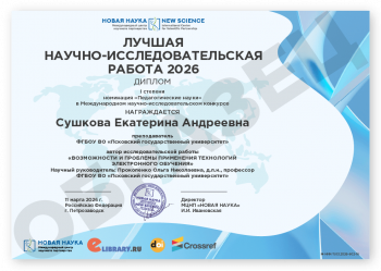 Международный научно-исследовательский конкурс ЛУЧШАЯ НАУЧНО-ИССЛЕДОВАТЕЛЬСКАЯ РАБОТА 2026 Код конкурса: НИК-602 Дата проведения: 11 марта 2026 г. К участию в конкурсе принимаются статьи объемом от 5 до 12 страниц на русском и английском языках. Авторами одной конкурсной работы могут быть несколько человек. По итогам конкурса его участники получают: 1. Публикацию своей конкурсной работы (статьи) в сборнике статей конкурса «ЛУЧШАЯ НАУЧНО-ИССЛЕДОВАТЕЛЬСКАЯ РАБОТА 2026». Сборнику присваиваются УДК, ББК, ISBN; 2. Именные Дипломы (I, II или III степени) по решению редколлегии; 3. Размещение сборника и публикации участника в Научной электронной библиотеке eLIBRARY (Договор №467-03/2018K); 4. DOI - международный цифровой идентификатор публикации (см. условия участия); 5. Бесплатный сборник статей конкурса «ЛУЧШАЯ НАУЧНО-ИССЛЕДОВАТЕЛЬСКАЯ РАБОТА 2026» (в электронном виде); 6. По итогам конкурсов предоставляется выписка из Протокола рассмотрения и оценки конкурсных работ и другие необходимые для отчетности документы (по запросу участника). Сборник статей конкурса формируется в течение 5 дней после окончания приема конкурсных работ (статей) и будет размещен на нашем сайте в разделе Архив конкурсов. Оргвзнос: 890 руб. |