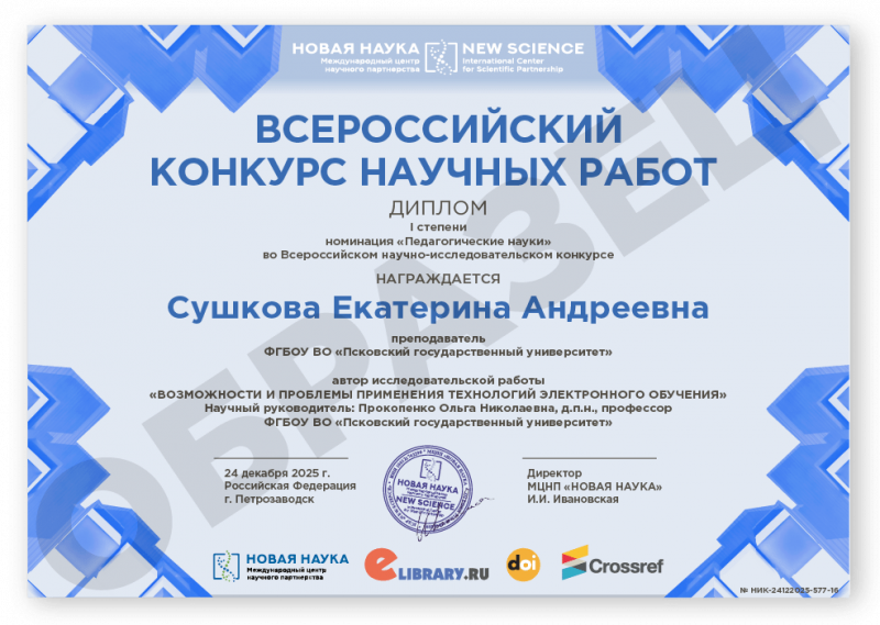 Всероссийский научно-исследовательский конкурс ВСЕРОССИЙСКИЙ КОНКУРС НАУЧНЫХ РАБОТ Код конкурса: НИК-577 Дата проведения: 24 декабря 2025 г. К участию в конкурсе принимаются статьи объемом от 5 до 12 страниц на русском и английском языках. Авторами одной конкурсной работы могут быть несколько человек. По итогам конкурса его участники получают: 1. Публикацию своей конкурсной работы (статьи) в сборнике статей конкурса «ВСЕРОССИЙСКИЙ КОНКУРС НАУЧНЫХ РАБОТ». Сборнику присваиваются УДК, ББК, ISBN; 2. Именные Дипломы (I, II или III степени) по решению редколлегии; 3. Размещение сборника и публикации участника в Научной электронной библиотеке eLIBRARY (Договор №467-03/2018K); 4. DOI - международный цифровой идентификатор публикации (см. условия участия); 5. Бесплатный сборник статей конкурса «ВСЕРОССИЙСКИЙ КОНКУРС НАУЧНЫХ РАБОТ» (в электронном виде); 6. По итогам конкурсов предоставляется выписка из Протокола рассмотрения и оценки конкурсных работ и другие необходимые для отчетности документы (по запросу участника). Сборник статей конкурса формируется в течение 5 дней после окончания приема конкурсных работ (статей) и будет размещен на нашем сайте в разделе Архив конкурсов. Оргвзнос: 990 руб. |