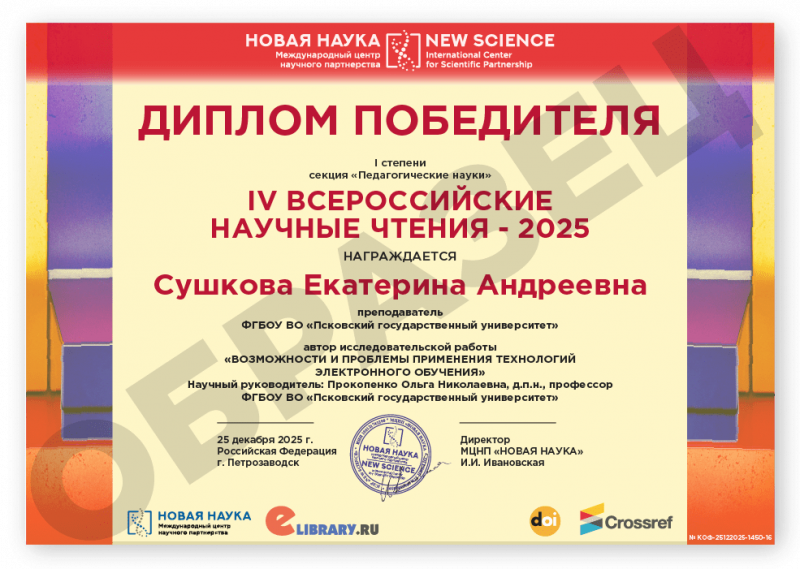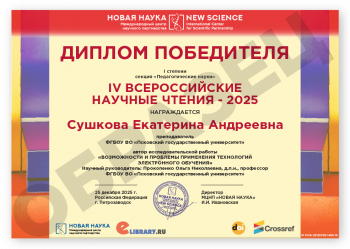 IV Всероссийская научно-практическая конференция ВСЕРОССИЙСКИЕ НАУЧНЫЕ ЧТЕНИЯ - 2025 Код конференции: КОФ-1450 Дата проведения: 25 декабря 2025 г. К участию в конференции принимаются статьи объемом от 5 страниц. Сборник статей конференции с присвоением ISBN, УДК, ББК формируется в течение 3 дней после окончания приема статей и будет размещен на нашем сайте в разделе Архив конференций. Бесплатно каждому автору предоставляется: