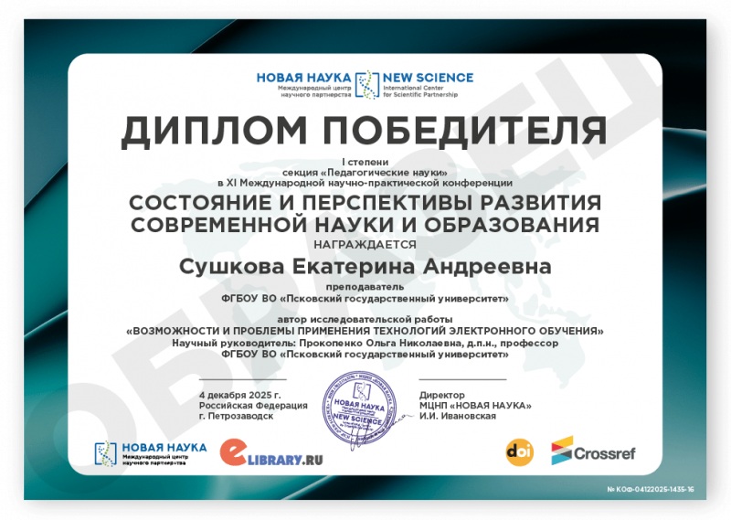 XI Международная научно-практическая конференция СОСТОЯНИЕ И ПЕРСПЕКТИВЫ РАЗВИТИЯ СОВРЕМЕННОЙ НАУКИ И ОБРАЗОВАНИЯ Код конференции: КОФ-1435 Дата проведения: 4 декабря 2025 г. К участию в конференции принимаются статьи объемом от 5 страниц. Сборник статей конференции с присвоением ISBN, УДК, ББК формируется в течение 3 дней после окончания приема статей и будет размещен на нашем сайте в разделе Архив конференций. Бесплатно каждому автору предоставляется: