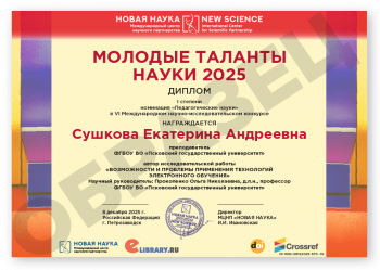 VI Международный научно-исследовательский конкурс МОЛОДЫЕ ТАЛАНТЫ НАУКИ 2025 Код конкурса: НИК-570 Дата проведения: 8 декабря 2025 г. К участию в конкурсе принимаются статьи объемом от 5 до 12 страниц на русском и английском языках. Авторами одной конкурсной работы могут быть несколько человек. По итогам конкурса его участники получают: 1. Публикацию своей конкурсной работы (статьи) в сборнике статей конкурса «МОЛОДЫЕ ТАЛАНТЫ НАУКИ 2025». Сборнику присваиваются УДК, ББК, ISBN; 2. Именные Дипломы (I, II или III степени) по решению редколлегии; 3. Размещение сборника и публикации участника в Научной электронной библиотеке eLIBRARY (Договор №467-03/2018K); 4. DOI - международный цифровой идентификатор публикации (см. условия участия); 5. Бесплатный сборник статей конкурса «МОЛОДЫЕ ТАЛАНТЫ НАУКИ 2025» (в электронном виде); 6. По итогам конкурсов предоставляется выписка из Протокола рассмотрения и оценки конкурсных работ и другие необходимые для отчетности документы (по запросу участника). Сборник статей конкурса формируется в течение 5 дней после окончания приема конкурсных работ (статей) и будет размещен на нашем сайте в разделе Архив конкурсов. Оргвзнос: 990 руб. |