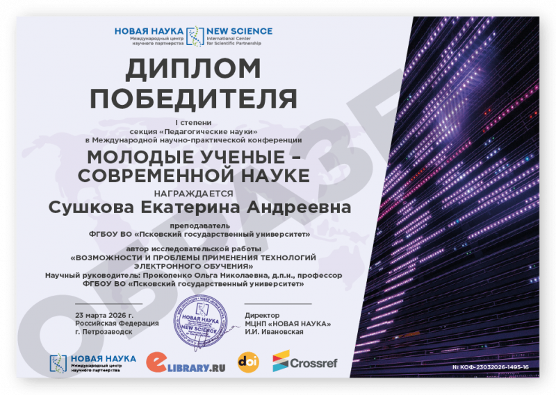 Международная научно-практическая конференция МОЛОДЫЕ УЧЕНЫЕ – СОВРЕМЕННОЙ НАУКЕ Код конференции: КОФ-1495 Дата проведения: 23 марта 2026 г. К участию в конференции принимаются статьи объемом от 5 страниц. Сборник статей конференции с присвоением ISBN, УДК, ББК формируется в течение 3 дней после окончания приема статей и будет размещен на нашем сайте в разделе Архив конференций. Бесплатно каждому автору предоставляется: